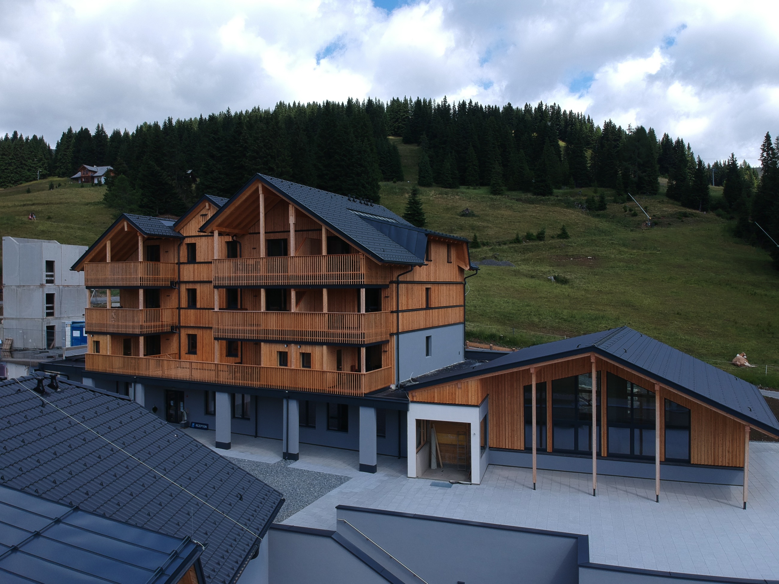 AlmAppartements 1598 je horský resort navržený jako skutečná „alpská základna“ přímo u svahu. Všechno je tu podřízené pohodlí hostů: recepce, restaurace a malý obchůdek v areálu, lyžárna a praktické zázemí, díky kterému je pobyt pohodlný a bez zbytečných přesunů. Projekt má jasně rodinný charakter, ale zároveň nabízí úroveň a služby, které ocení i náročnější klientela. Apartmány jsou koncipované jako „ready to rent“ – v alpském stylu, s kuchyní a kompletním vybavením pro okamžité používání. V kupní ceně je zahrnuto veškeré vybavení, skříň na lyže a u většiny volných jednotek také dvě parkovací místa v podzemní garáži. U všech apartmánů je možné doinstalovat privátní saunu.